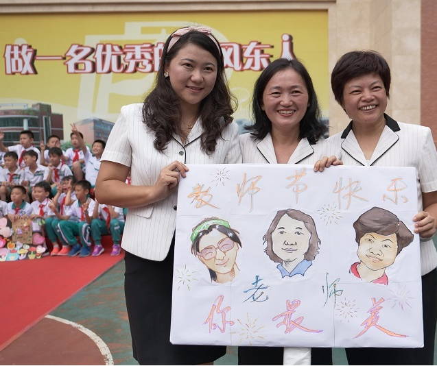 上午8點(diǎn),東風(fēng)東路小學(xué)在舉行升旗儀式之后,開始了教師紅毯秀。每個(gè)老師在兩名學(xué)生的陪伴下走上了紅地毯。四年級(jí)學(xué)生小陳告訴記者:“老師就是我們的明星。今天這項(xiàng)活動(dòng)太棒了。以往搞活動(dòng)都是我們學(xué)生做主角,這次終于讓默默為我們付出的老師登臺(tái)亮相!”