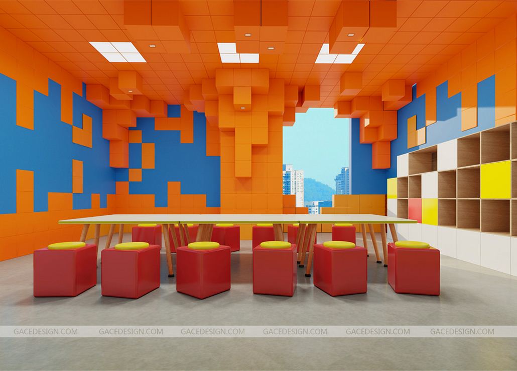 我們大部分企業(yè)辦公面兒童教育空間設計積不大,首先要考慮實用功能,裝飾是一種輔助,不可本末倒置。